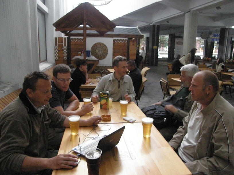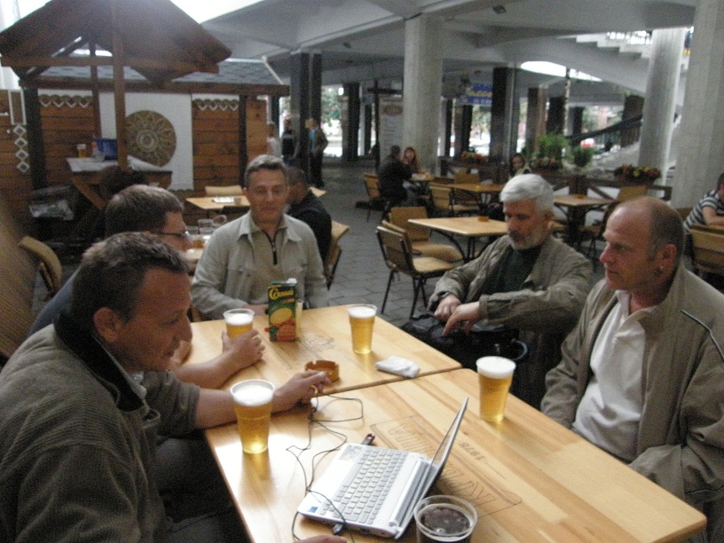 Встретился с Минчанами порговарили. обменялись падрками. выпили по бакалу пива .просто времени было в абрез .очень обрадываплись журналам .Витькиным лезвиям .а особо их порадовуал шамронский дуб . на столе нет не чего. просто в Белорусии не кто статью не отменял. поэтому решили не светиться .