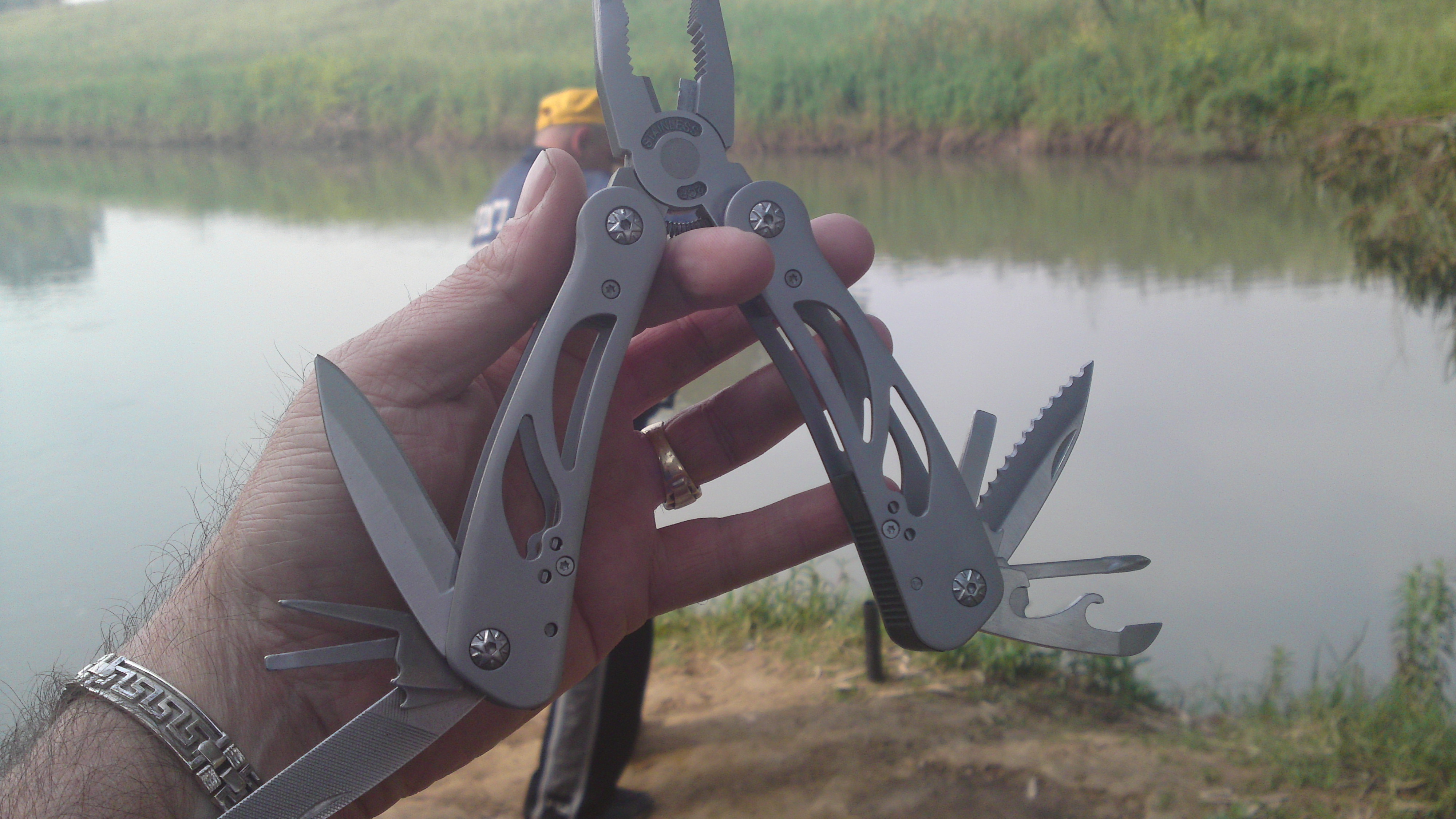 На рыбалке мультитул был тоже хорош.Ветки подрезать и разрубить для мангала,плоскогубцами вытащить крючок с пасти черепахи,словить сбежавшего с садка речного краба и объязательно,как открывашка для пива.
