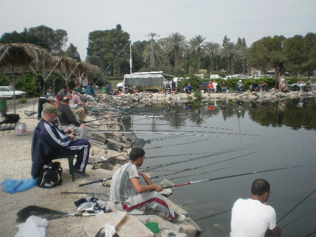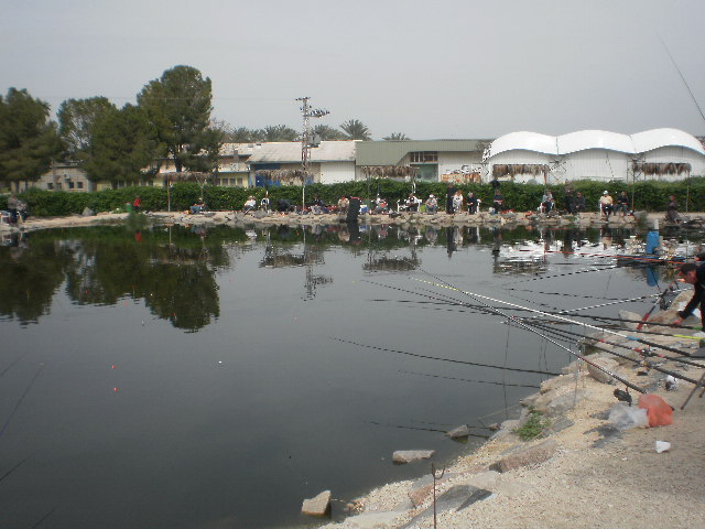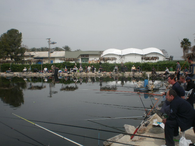 Смекалистый израильтянин "оформил" пруд 25 на 30 метров и глубиной до 2 метров,завозит и запускает в него рыбу - зеркальный карп,мушт -солидных размеров и по весу от 1кг и до ...  Счастливчикам выдает билеты по 50шек. и лови и выноси сколько удача улыбнется.