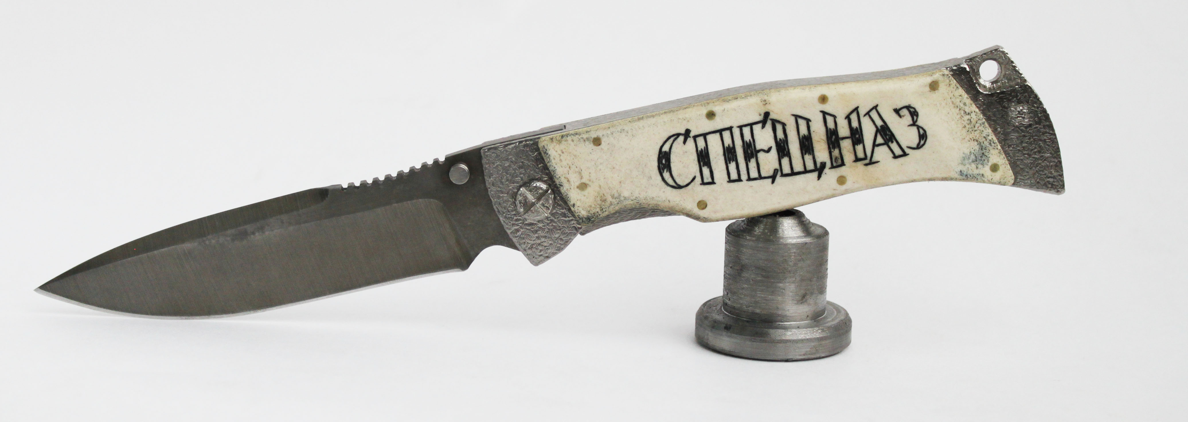 Не какого трёпа, всё правельно .Он, ведь хороший нож сделал поэтому и знак правельный поставил .О ни друг, друга достойны ..Я так думаю ..! ( дда не один спецназовец не отказался от такого ножа да еще с таким механизмом.)
