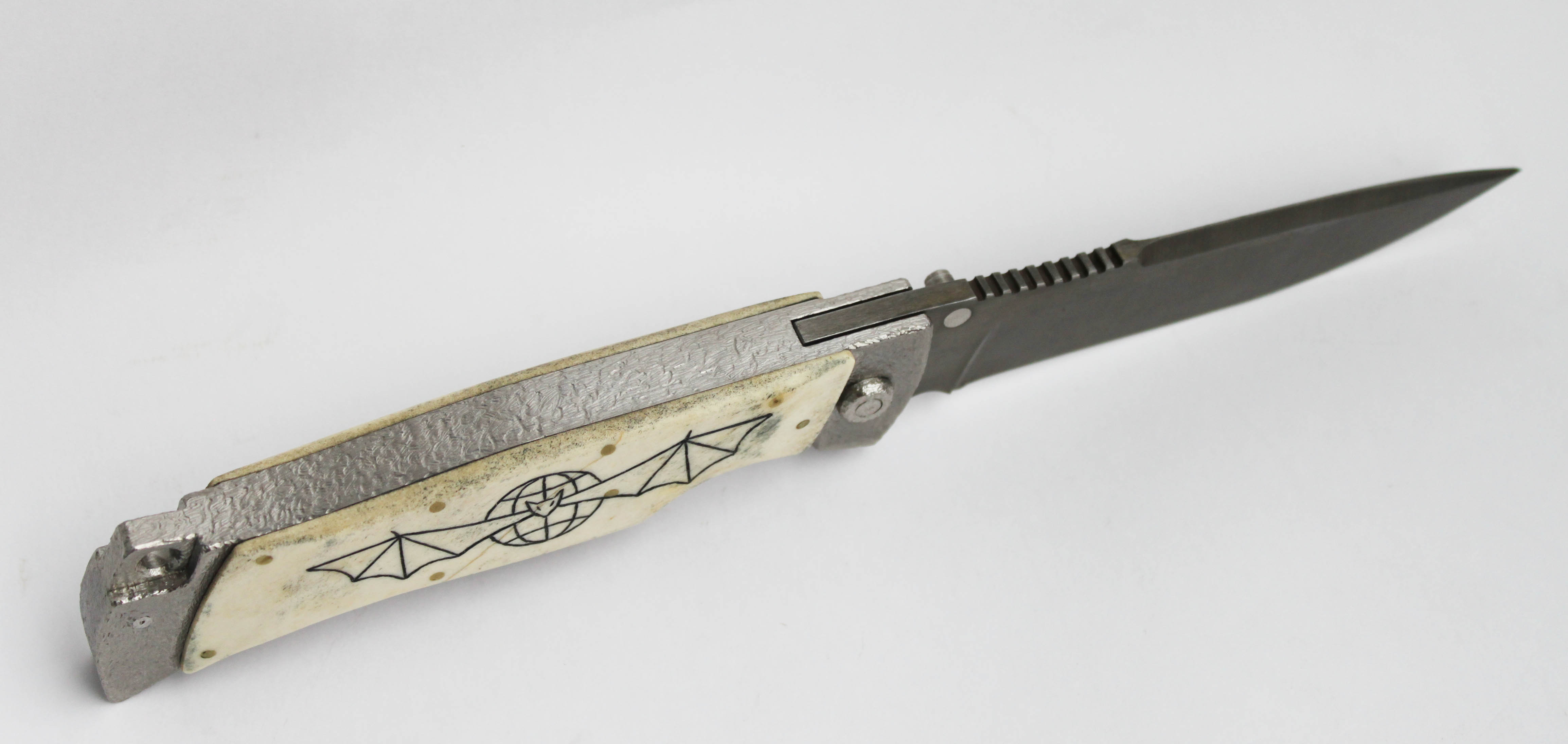 Складень очень понравился .Есть пару вопросов Титан техн . знаю, броневой титан заю ,а вот напряжонный титан первый раз слышу .В нём что арматура :D обясни пожалуста .Понимаю ,что л.мыш стилизована .настоящая из земного шара не выходит и черная (твоя побольше ,чтоб место на накладке занять )и снамёком ,если ,что то мы вас и там достаним . :D А нож вготовом виде Харош ОХ как.