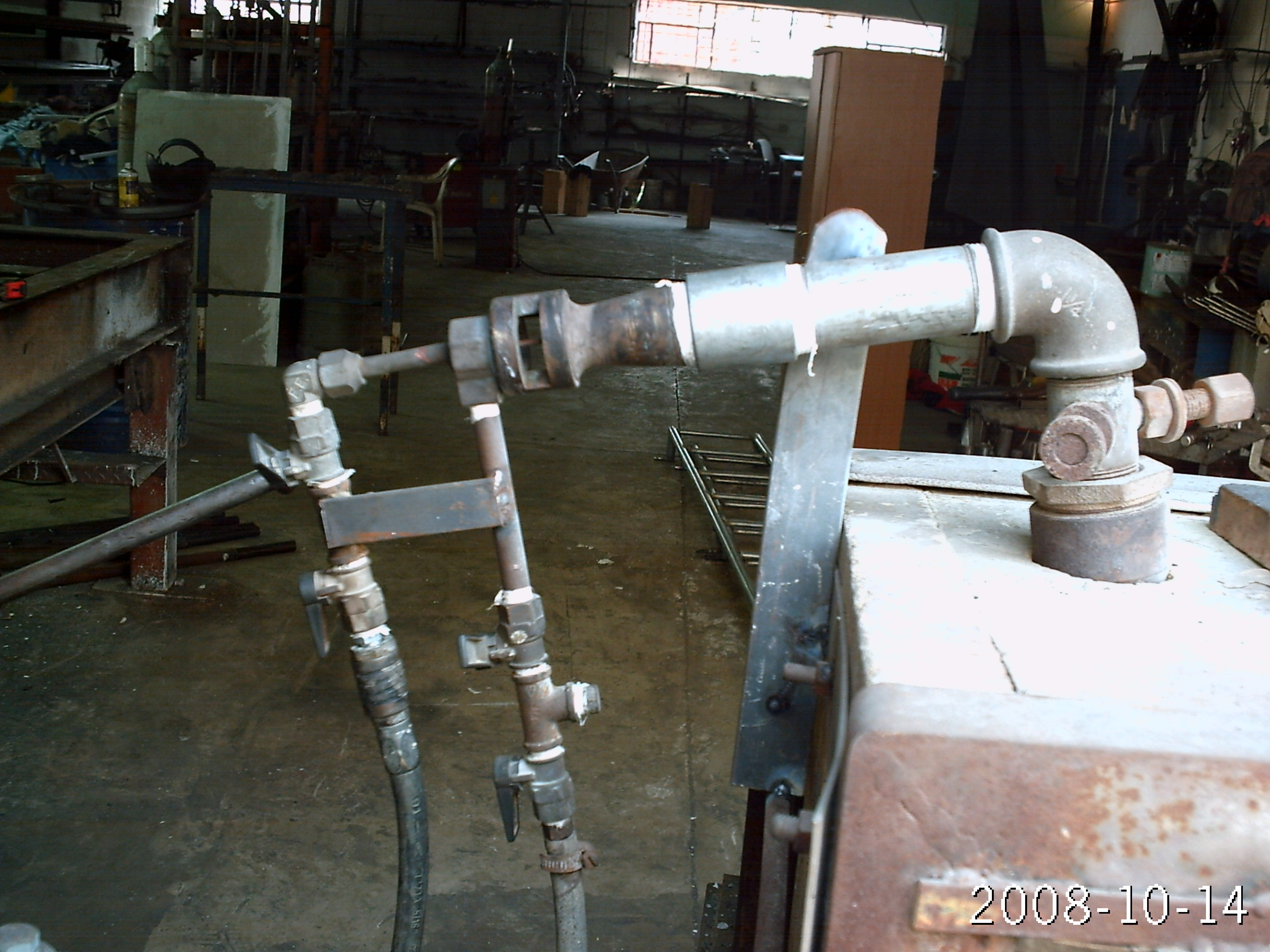 1)Жека, так я соби не понял зачем по два крана на каждой трубочке? Для экономии? типа нижним выставляешь рабочую подачу, а верхний закрываешь во время перекура? 2) ,,первая,, труб ка это поддув или газ? судя по переходнику- поддув, тогда зачем окно подсоса? 3) що воно такэ с двумя винтами, перед самым входом в камеру? 4) есть ли распылитель на патрубке в камере? 5) судя по распылителю- деталь с обычной газовой плитки? 6) Изоляция кирпич в два слоя? долго инерцию набирает? 7) Дает ли сварочную темп. и если да, то какой шамот у Теня, тяжелый? 8) как избегаешь износа дна печки от буры?
