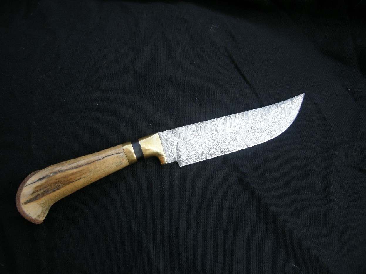 Пчак дамасский. Клин от Берюкова.Рукоятка рог,эбен ,латунь.