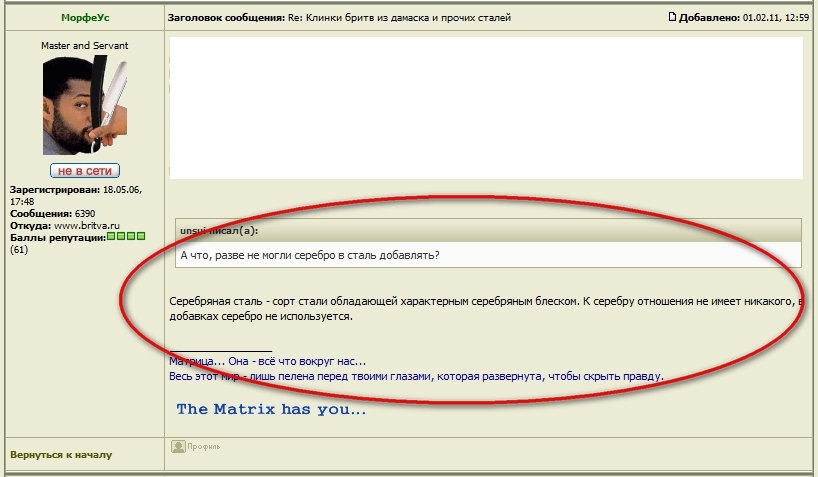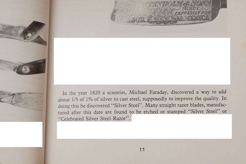 manah писал(а):Возвращаясь к Silver steel. В то время серебро в этой стали присутсвовало. В разных источниках приводится разное сожержание серебра. Я сейчас читаю, что серебра было .02%. Это было в начале 1820х, приблизительно в это время начале делать выборку лезвий slight hollow. И в целом у Миши Фарадея получился хороший рекламный ход. И получились лезвия из "new steel".